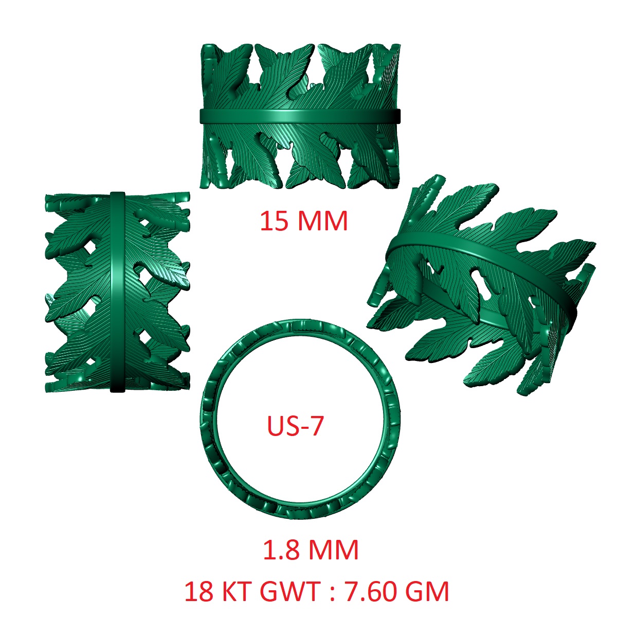 This elegant broad leaf inspired ring CAD design features a nature-inspired silhouette with a beautifully sculpted leaf motif. The ring is designed with a wide leaf structure that gently curves across the finger, creating a bold yet graceful statement.