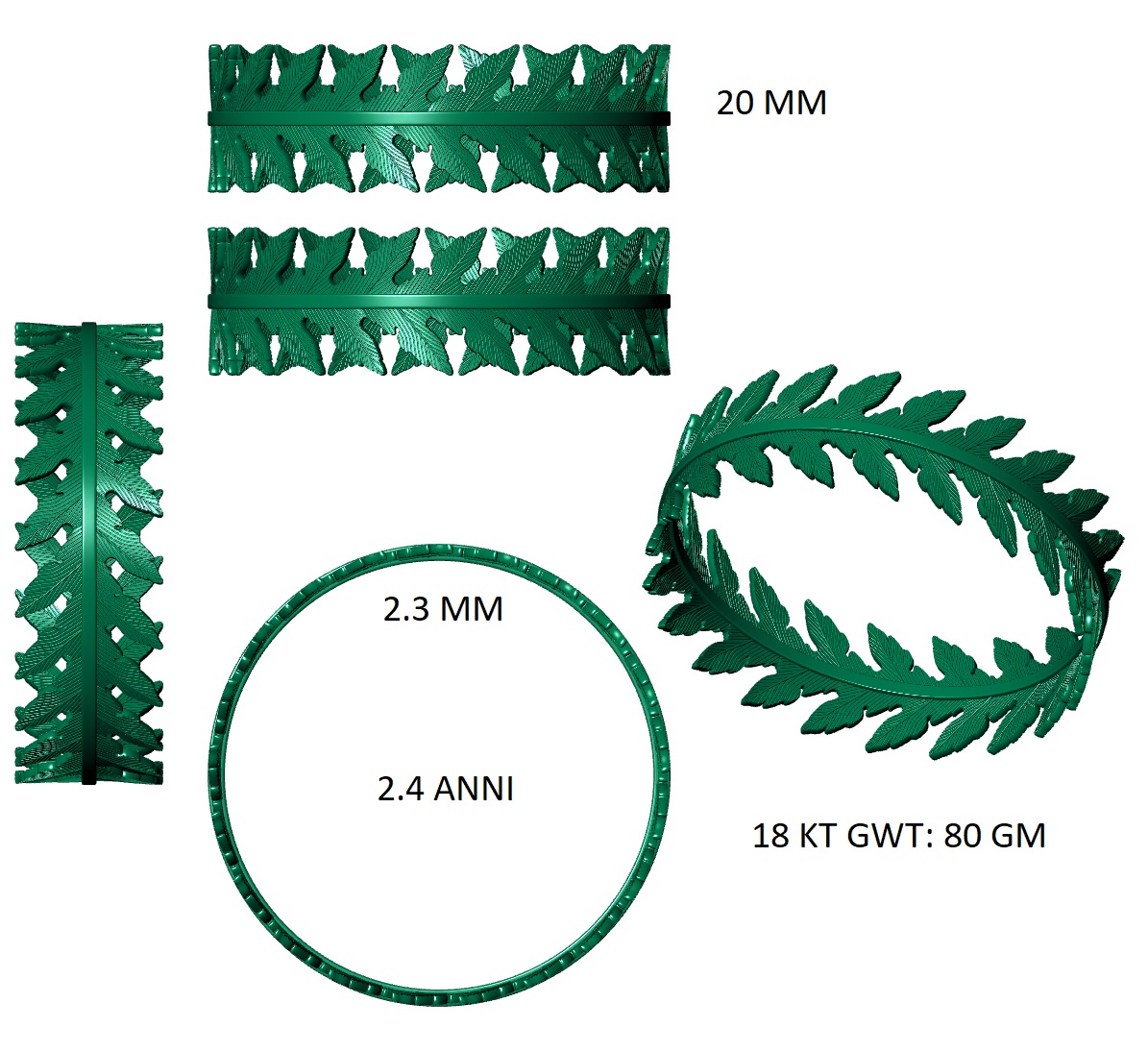 An elegant leaf-inspired bangle CAD design that combines natural beauty with refined jewelry craftsmanship. The bracelet features delicate leaf motifs flowing gracefully along the bangle structure, creating a soft organic aesthetic inspired by nature.
