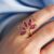 Two half-moon shaped diamonds are positioned symmetrically on each side of the center ruby, forming a balanced three-stone composition. The curved half-moon diamonds follow the contour of the center gemstone, enhancing its brilliance and creating a harmonious geometric structure. Designs that combine a ruby center with half-moon diamonds are known for their balanced brilliance and sophisticated appearance.