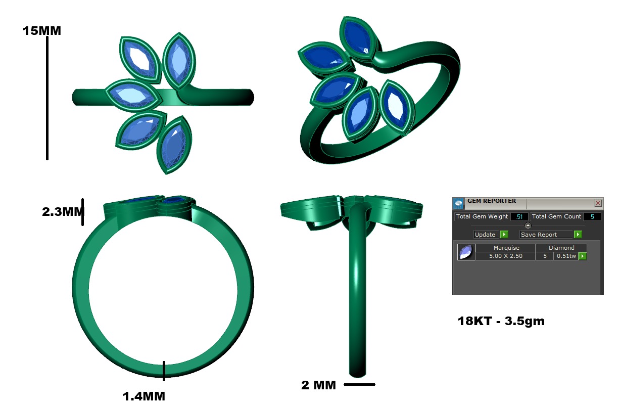 The band is smoothly polished and gently tapered toward the back, allowing the gemstone arrangement to stand out prominently while maintaining comfortable wear. The refined structure blends classic gemstone elegance with modern geometric symmetry, making it ideal for high-end jewelry production.