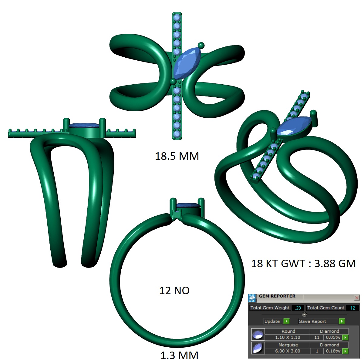 This elegant single knot marquise diamond ring CAD design features a graceful intertwined structure that symbolizes unity and timeless elegance. The centerpiece of the ring is a marquise-cut diamond, positioned horizontally and secured with delicate prongs.